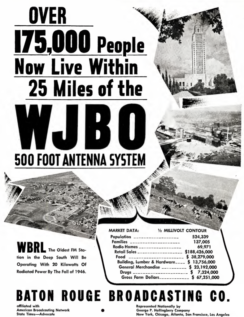 A license to operate radio station WAAB was issued by the Federal Communications Commission to the New Orleans Times-Picayune today in 1922. It is said to be the oldest four letter call-letter station. A few months later ownership was transferred to the station’s primary operator, Valdemar Jensen, who operated the station from his house’s basement. In early 1926, he changed the call letters were changed to WJBO, for the Jensen Broadcasting Organization. Jensen broadcast from the Roosevelt Hotel and Orpheum Theater. In 1932, he sold WJBO to the owners of The Advocate newspaper in Baton Rouge who moved the station to Baton Rouge in December 1934 as the capital’s first commercial radio station. In 1940, the company was awarded a license to operate an FM station, now WFMF, whose debut broadcast as “the first frequency modulation radio station in the Deep South” was on June 15, 1941.