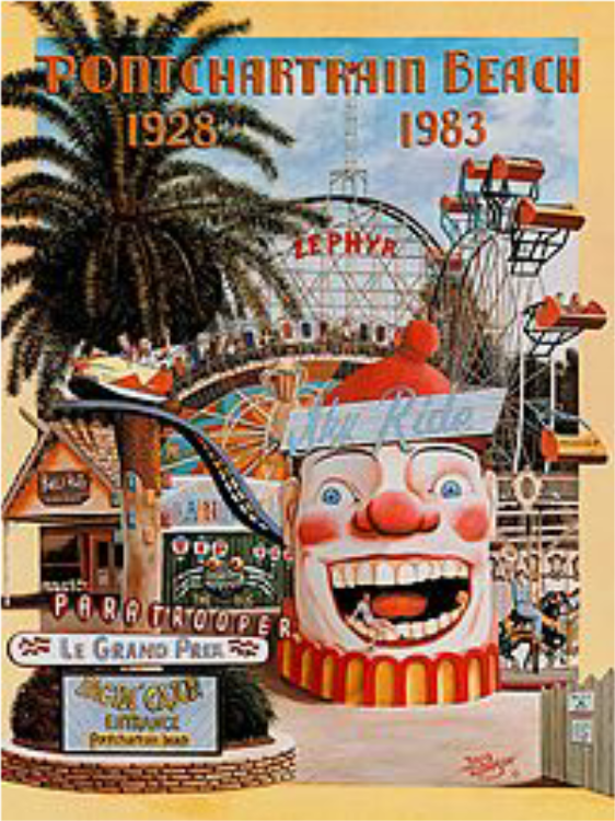 Pontchartrain Beach opened today in 1928. The amusement park on the New Orleans Lakefront was founded by Harry J. Batt, Sr., grandfather of actor Bryan Batt, and later managed and owned by his sons, Harry J. Batt, Jr. and John A. Batt. When the park opened, there was another amusement resort called Old Spanish Fort, just across Bayou St. John. The park included a beach with a large art deco style bathhouse and swimming pools and amusement rides including the Zephyr, the Zephyr Junior, Smoky Mary, the Wild Maus, Musik Express, Log Ride, the Ragin’ Cajun, the Bug, Paratrooper, Scrambler, Calypso, Ghost Train, bumper cars, carousel and Ferris wheel.