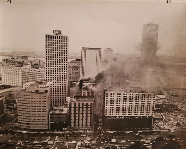 Tragedy struck in downtown New Orleans today in 1972 as six men and women were killed when a fire engulfed the top floors of the Rault Center, a 17-story high-rise office and apartment building. Eyewitnesses and news reporters watched in horror as five women – a salon owner, an employee, and three customers — screamed for help from the 15th-floor window of the Lamplighter Beauty Salon. Firefighters were on the scene but were unable to help. Their ladders were too short and water was unable to shoot that high. The women, desperate for escape, jumped eight stories to the roof of a neighboring building, which housed the Travelers Insurance Companies. Three of the women — Jacquelyn Ann McConnell Maillho, Norris Farley, and Janice McBeth — died instantly. A fourth woman, Wilma Williams, died later in the hospital. Investigators believe the fire could have resulted from arson, although the actual cause remains unknown.